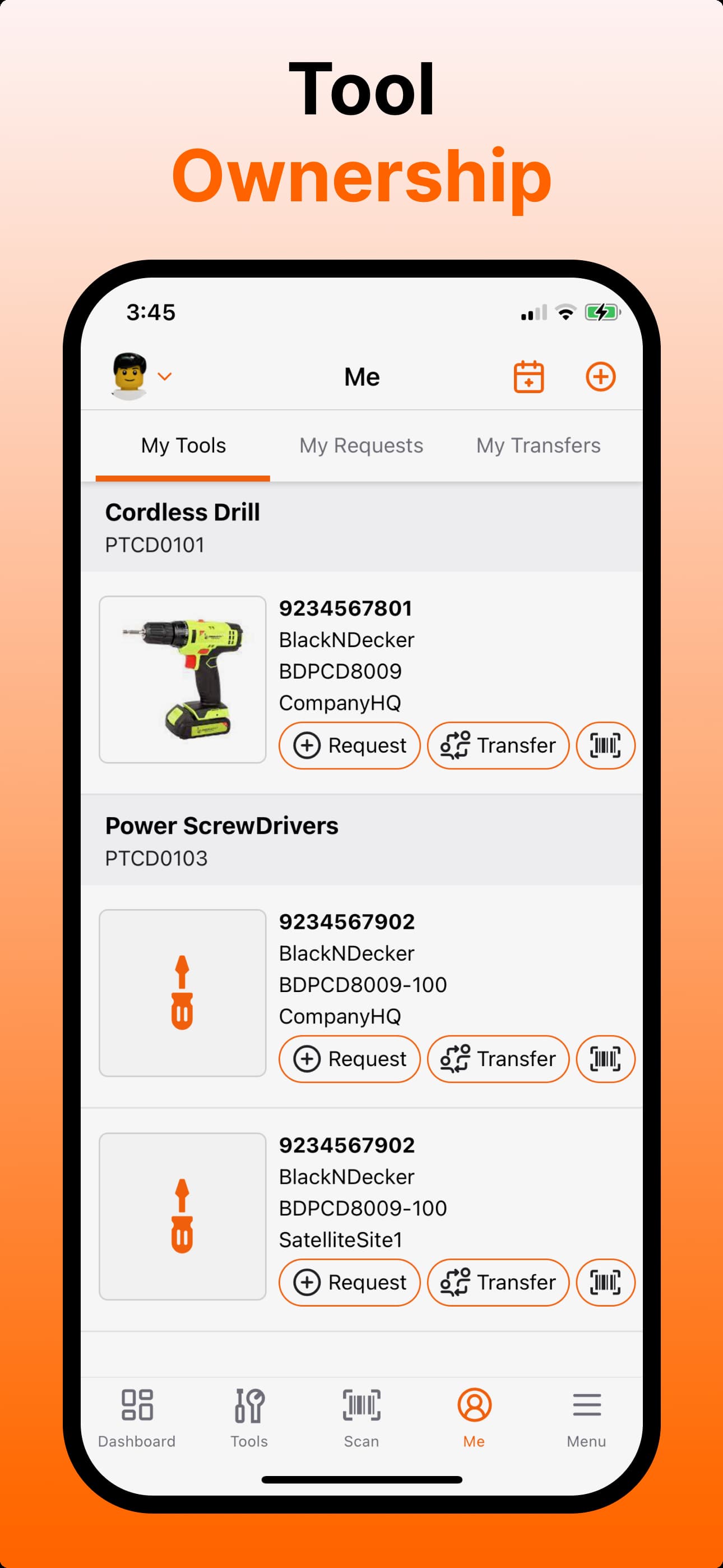The job site is mobile, and your tool management system should be too. The ToolWorks mobile app gives your team complete control from their pockets. They can view assigned tools, check availability, manage transfers, and create maintenance requests on the go.